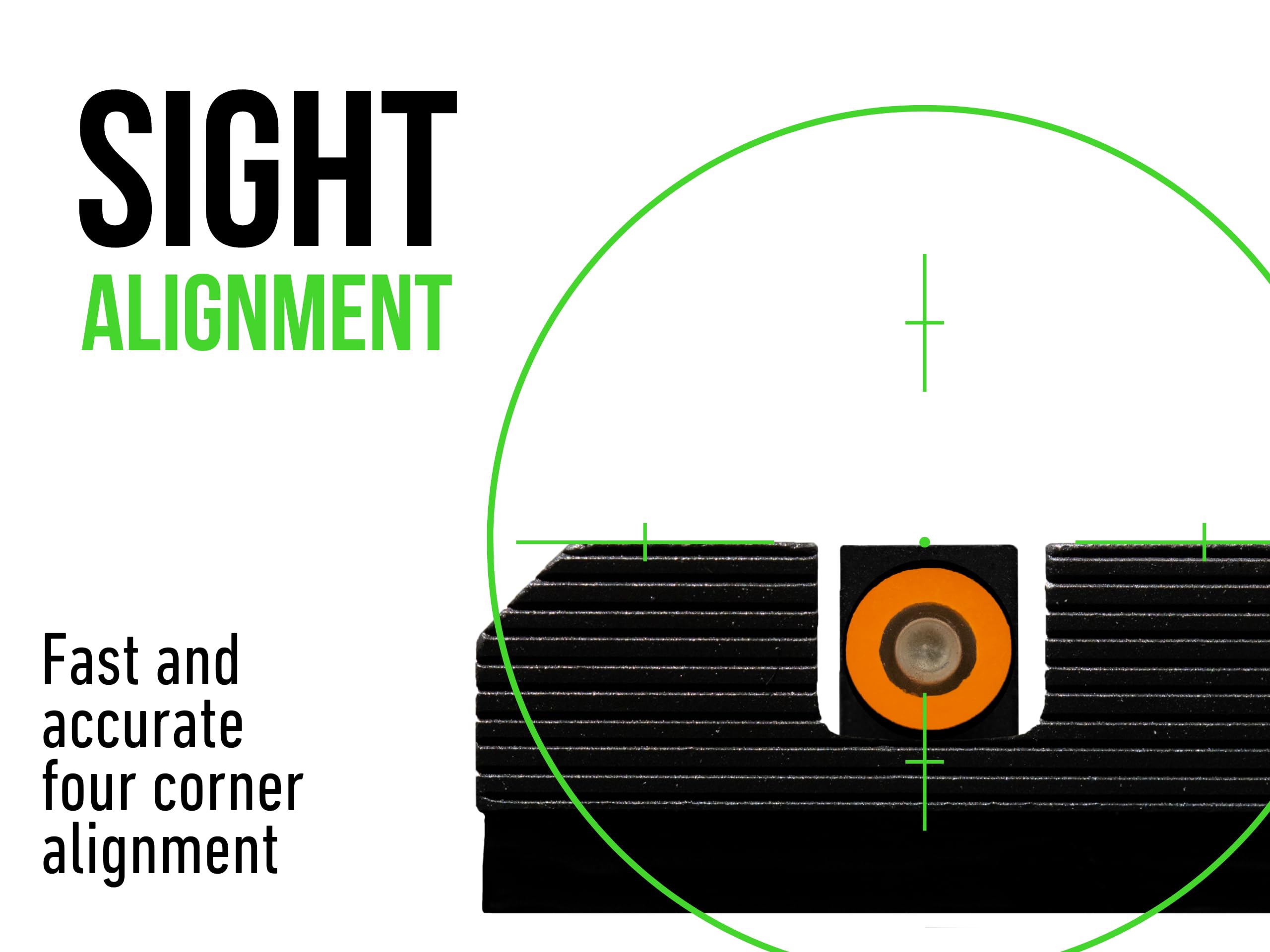- Fast Sight Acquisition: Highly visible tritium front sight provides fast sight acquisition and accurate shot placement day or night. Front sight is equipped with an orange photoluminescent glow dot.